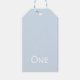 Primeiro aniversário do bebê. Saco de presente de primeiro aniversario azul Pastel com tipografia branca 'Um'. Perfeito para o presente de um bebê e para os temas de vassoura. Bonita e macia sombra pastel. Etiqueta de presente azul Pastel primeiro aniversario.