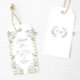 Mergulhe no charme atemporal de nossas etiquetas de agradecimento de casamento botânico rústico e boho chic. Adornadas com uma grinalda requintada de folhagens elegantes e folhas de eucalipto entrelaçadas com flores de rosa branca, essas etiquetas elevam seus presentes de casamento com um toque de refinamento. Perfeitas para adicionar um toque de romance contemporâneo à sua celebração de casamento boêmio de outono.