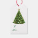 Esta etiqueta de presente de Natal é mostrada com uma impressão de árvore de Natal festiva. Personalize este item ou comprar como está. Impressão de Imagem de Ações freepik.com