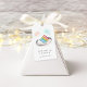 Perfeito para festas de noivado, jantadas de ensaio, ou chás de casamento, essas etiquetas de favor festivas apresentam uma fatia de aquarela de bolo em tons de arco-íris, revestidas com faíscas e aqua confetti. Personalize com seus nomes e data do casamento ou data do evento abaixo.