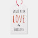 Etiquetas de presente kraft clássicas. Texto "Feita com amor". Personalize com seu próprio nome. Opção opcional de etiqueta de preço no verso.
