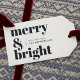 Uma etiqueta de presente de feriado moderna na moda com uma letra retrógrada ousada que diz "feliz e brilhante" em preto sobre fundo branco. A saudação e o nome podem ser facilmente personalizados de acordo com as suas necessidades. Uma design de diversão de tendências para sair desta temporada de férias!