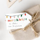 Etiquetas de presentes coloridas e modernas de Natal com uma corda de luzes de Natal no topo da design. A frase "Feliz e Brilho" é apresentada na tipografia de tendência com tons de vermelho, ouro, laranja, rosa-pincel e verde. As bonitas felizes e as brilhantes etiquetas de presentes dão espaço para o nome do destinatário do presente. A etiqueta colorida do presente de Natal reverte para um fundo verde escuro com sutil neve branca. Projetado para coordenar com nossa coleção de cartões de feriado Modernos de Feliz e Brilho.