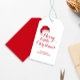 Esta design apresenta uma pequena etiqueta de presente de Natal feliz, um moderno minimalista, minimalista e simples, com tipografia vermelha, uma escrita de caligrafia fofa, uma tenda elegante, um favor de festa divertida, festa de férias, na moda criativo, com capricho