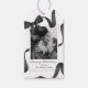 Etiquetas de presentes de natal elegantes, de natal, com um simples fundo branco, com uma peça central de fotos adornada por uma bela fita e arco de cor-de-água preta. Preencha com seu nome de família e as estações saudam "feliz natal".