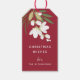 As etiquetas de presentes de Natal festivas apresentam um fundo vermelho de morango festivo com flores brancas em cascata, folhas verdes e folhagem botânica. Personalize com seu cartões de natal personalizado (mostrado com "Desejos de Natal") e seus nomes ou nome da família. Vazio no verso para escrevendo manualmente o nome do destinatário do presente. Um design de Natal moderno e elegante que certamente agradará a todos na sua lista de presentes!