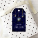 Etiqueta de presente de feriado com ornamentos de joias com fundo azul marinho e sotaques criando um sofisticado visual de feriado. Verifique em nossa loja mais itens desta coleção.