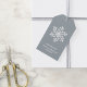 Etiquetas de presentes de feriado com um simples floco de neve branco em um fundo de cinza azul. Use as ferramentas de design para editar o texto, alterar as fontes e as cores ou carregar sua própria foto para design suas próprias etiquetas de presentes de Natal personalizadas.