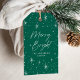 Etiquetas de presentes de Natal elegantes e modernas, com "Feliz e Brilho", apresentadas num script branco, com letra branca, enquadrado por uma fronteira de estrelas brancas com um fundo verde. Personalize a feliz e as etiquetas brilhantes de presentes adicionando seu nome.