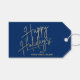 Felizes Feriados em um falso roteiro de folha de ouro e seus nomes em letras quic, essas etiquetas de presentes azuis ou as etiquetas de favoritos de festas são na moda para qualquer ocasião de Natal. CORRESPONDENDO a itens na nossa loja.
