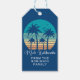 Esta bonita etiqueta de presente da festa de Natal havaiana mostra um pôr do sol da praia tropical num legal fundo azul com um desenho de palmeiras costeiras contra um pôr do sol à beira do mar. Personalize com seu nome em branco sob Mele Kalikimaka em tipografia cursiva nessas bonito etiquetas de favorecimento de feriados não-fotográficos.