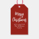 Folhas lindas e arrojadas de cor-de-água com groselhas vermelhas fazem um padrão bonito nessas etiquetas festivas de presentes verdes. Personalize de quem são seus presentes no fundo em um roteiro de feriado branco no fundo vermelho.