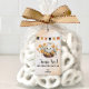 Adicione um toque doce e assustador aos seus favoritos para festas com estas etiquetas fantasmas personalizáveis. Apresentando um fantasma adorável cercado por flores de outono e uma faixa festiva, estas etiquetas são perfeitas para aniversários de Halloween ou festas de Dia das Bruxas Infantis.