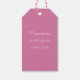 Etiquetas de presentes personalizadas com flores rosa bonito e prados lavandas num primavera brilhante contra um céu azul.