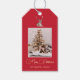 Etiqueta Para Presente Foto festiva com o inverno Vermelho