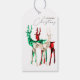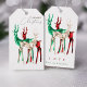 Etiquetas de presentes de Natal exclusivas e na moda desenhadas com renas de cristal de cor-de-água pintadas manualmente em três variedades de gemstone: eserald, ruby e diamante.