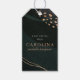 Esta etiqueta de presente de Geodo Metálico é perfeita para uma noiva moderna e única. O design apresenta elementos dourados sobre texturas pretas e verdes escuras. Um design único e atual.