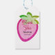 Captivando Strawberry Rosa Y2K Obrigado etiqueta de presente. Este design apresenta um morango muito grande, cor-de-rosa e verde, brilhando sobre fundo branco.