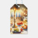 Ilustração de aquarela de Hanukkah. Uma mesa bem arrumada para uma comemoração festiva, com uma menorah tradicional com velas iluminadas. Luz suave e quente, enquanto decorações de férias adicionam um toque de alegria. Luzes quentes criando uma atmosfera acolhedora e convidativa.