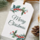 Esta etiqueta de presente personalizável é decorada com sombras e bagas e o ditado "Feliz Natal" na frente. As costas podem ser facilmente personalizadas com seu nome, logotipo ou ditado.
