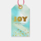 Gradiente verde pastel e etiqueta de presente de Natal dourada ou etiqueta de garrafa com texto de "Joy" em tipografia divertida mas elegante. Personalizar com breve saudação e nome do remetente. Combine e combine com outros designs desta série.