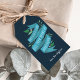 As etiquetas de presentes elegantes de Chanucá apresentam "que adorem e acendam o vosso coração em Chanucá" em tipografia manuscrita numa fita azul-aquática, acentuada com folhas verdes e bagas brancas. Personalize com seu nome ou mensagem em branco em um fundo azul marinho, Vazio no verso.