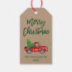 Kraft Brusch Script Watercolor Vintage Red Truck com Etiqueta de Presente de Árvore de Natal - Verde