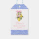 Etiquetas de lembrancinhas de chá de panela La Dolce Vita Limão e Laço Rosa com padrão azul.