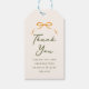 Esta simples etiqueta de agradecimento é perfeita para lembrancinhas de festa, eventos de casamento, presentes corporativos e muito mais. Um arco de fita laranja assenta acima de um texto simples e elevado num estilo de caligrafia manuscrita combina bem com uma fonte serifada em maiúsculas texturizada para um visual sofisticado e pode ser facilmente personalizada para se adequar ao seu evento.