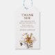 Obrigado de casamento, você mostra um elegante design de flor silvestre floral de jardim botânico com flores brancas e laranja queimadas e folhagem em fundo branco e bronzeado.