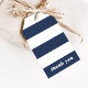 Adicione um toque especial aos seus favores ou presentes com estas etiquetas náuticas modernas. Design apresenta faixas largas, azuis e brancas, de marinho com o "obrigado você" ou a sua escolha de texto no tipo retrô.