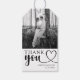 Unique and elegant wedding favour tags for your special day. Express gratitude to your guests with this romantic design style, featuring trendy calligraphy script with heart detail and a personalised photo of one of your favourite couples in a classic black and white filter. Easily customise these wedding favour tags to match your wedding theme and create lasting memories. Perfect for any couple looking to add a personal touch to their wedding celebration.