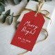 Personalized Christmas gift tags feature modern merry & bright script and snowflake, simple and elegant.