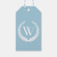 Este design apresenta um monograma elegante rodeado por uma coroa de folhas. A cor de fundo mostrada aqui é azul claro e pode ser personalizada para a cor de sua escolha. Selecione o botão "Personalizar" e insira o seu monograma e a sua escolha de cor de fundo para uma bela etiqueta de presente personalizada. A parte de trás desta etiqueta inclui "Para" e "De".