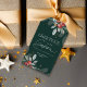 Uma etiqueta de presente de Natal moderna, com elegante verde de inverno e bagas em um rico fundo verde escuro. O design é acentuado com o popular texto de estilo manuscrito com a sofisticada saudação "Saudações da Estação". O texto personalizado permite adicionar sua própria mensagem curta ou usar a mensagem mostrada.
