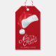 Personalizado, com as etiquetas de presentes de Natal vermelho - Lê 'Feliz Natal' em letras brancas elegantes e vintagas de caligrafia. A parte inferior tem nome personalizado no estilo caprichoso. No topo está um chapéu vermelho de Papai Noel. Em fundo sólido vermelho oco, que pode ser alterado para qualquer cor. O mesmo na parte de trás. Etiquetas de Natal perfeitas para adicionar um cartões de natal festivo a todos aqueles presentes de Natal antes de serem enviados por correio eletrônico. Papais noeis engraçados e divertidos etiquetas de Natal para presentes.