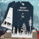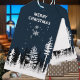 Uma noite de inverno de neve escura, minimalista e belamente escura, contra um céu profundo marinho com flocos de neve gigantes e as palavras "Feliz Natal" ao longo do topo. A parte traseira apresenta um quadrado branco sobre os gráficos para escrever à mão o de e para.
