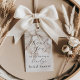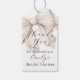 Simples, elegante e tão feminino, este favor de chá de panela ou etiqueta de presente tem um grande laço branco marfim em aquarela inclinado para um lado, adicionando um toque de charme. Um modelo de texto elegante com fonte manuscrita e serifada está incluído para personalizar com o nome da homenageada e o texto desejado. Essas etiquetas são uma boa escolha para adicionar aos favores da festa e pequenas lembrancinhas para os convidados.