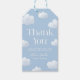 Agradeça a amigos e familiares por terem comparecido ao seu chá de bebê com essas etiquetas de favor temáticas 'nuvem nove' em azul poeirento.