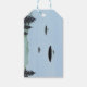 Uma aquarela, caneta e tinta, e desenho a cores de lápis de três OVNIs de disco sobre as montanhas são apresentados nesta engraçada etiqueta de presente!