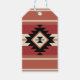 Padrão étnico boêmico asteca com formas geométricas em vermelho, laranja, cinza e cores pretas em fundo listrado