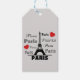 Ilustração de design de texto de Paris com Torre Eiffel e decoração de corações vermelhos. É possível mudar a cor de fundo e adicionar uma diferente à design com sua escolha.