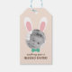 Etiqueta de presente de Páscoa divertida com orelhas de coelho e um arco azul. © Humor 4 Cuz