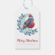 Belas etiquetas de presentes personalizadas de natal com uma ilustração de aquarela de um pássaro na lua.