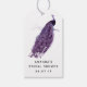 Etiquetas de presente de pavão com tema de cor lavanda e marfim.