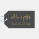 Apresentando as etiquetas de presentes do roteiro de caligrafia elegante personalizado com nomes, o toque perfeito para seus favores de casamento e decor de festa. Essas etiquetas são trabalhadas meticulosamente com nomes personalizados em um roteiro elegante de caligrafia, acrescentando um toque sofisticado ao seu evento. Ideal para favores de casamento, obrigados de etiquetas, etiquetas de presentes de boas-vindas, e mais, estas etiquetas personalizadas são versáteis e podem ser personalizadas para qualquer ocasião. Quer você esteja expressando gratidão aos seus convidados ou acrescentando um toque pessoal à decoração do seu partido, essas etiquetas são uma escolha perfeita. Com suas cinzas escuras e esquema de cores douradas, essas etiquetas de presentes exudem elegância do eterno e certamente complementam qualquer tema de casamento ou paleta de cores. Torne o seu dia de casamento ainda mais especial com nossas Etiquetas de Presente Personalizadas com Nomes Elegantes.