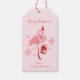 Uma etiqueta de presente de na moda, moderna, com tipografia moderna, com um chapéu de Papai Noel decorado vestindo Flamingo rosa. Personalize facilmente esta etiqueta de presente clicando no botão "Personalizar".