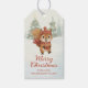 Add a charming touch to your gifts with this adorable watercolor Christmas gift tag featuring a cute squirrel holding a present in a snowy forest with the customizable text Merry Christmas and sender name. The whimsical boho watercolor style brings cozy winter charm and joyful holiday spirit to every package. The back features a beautifully decorated Christmas tree set in the same snowy woodland scene for an elegant finish. Perfect for families, kids, and nature lovers. Part of a collection with matching cards, wrapping paper, party supplies, gifts, and decor.