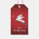 Decorre o seu presente de Natal com esta etiqueta de presente "Um tipo"! Ela apresenta uma pomba branca serena voando entre as estrelas carregando um ramo de oliveira com fitas vermelhas e verdes fluindo...Espalhando A Paz Na Terra! Este é um Design original do artista Kerry Miller.
