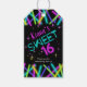 Um padrão de pulseiras e pulseirinhas espalhadas em uma variedade de cores neon brilhantes adiciona um elemento divertido a este design de etiqueta de presente Sweet Sixteen. Adicione um nome e uma mensagem personalizados usando o modelo fornecido. Procure ID760 para ver convite e outros suprimentos para festa com este design colorido.